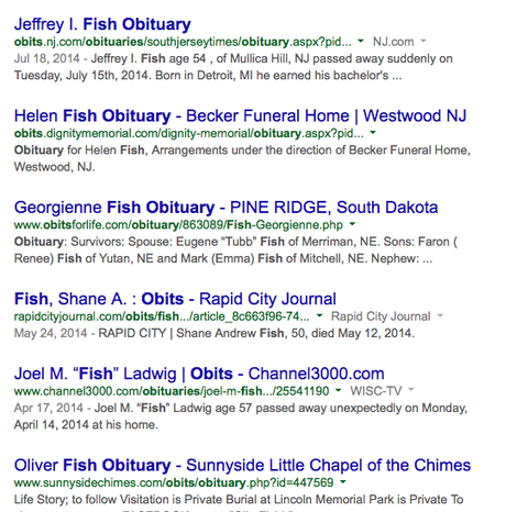 Rob: Look at these Fish Obit listings. There's simply too much competition.